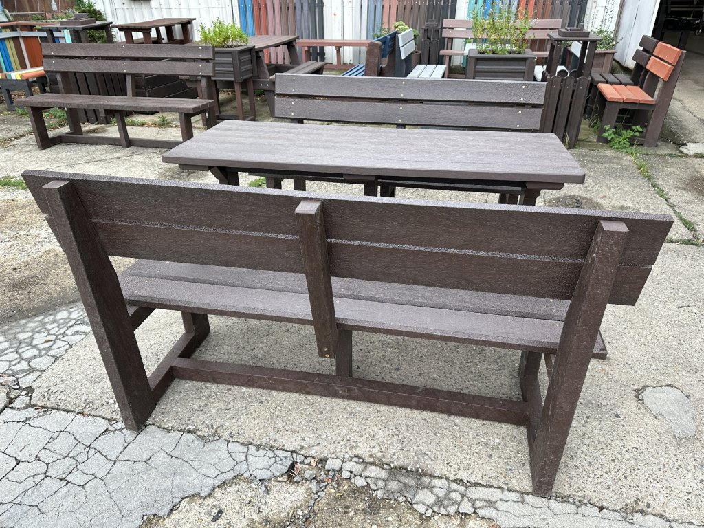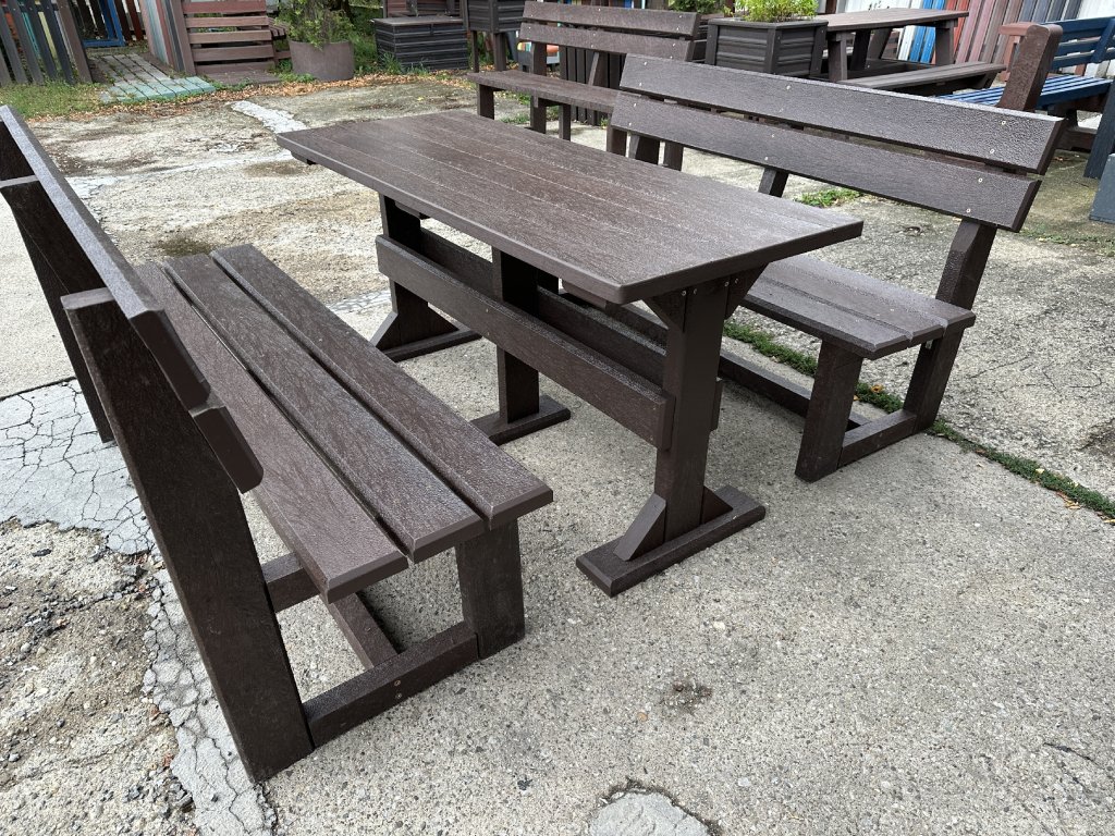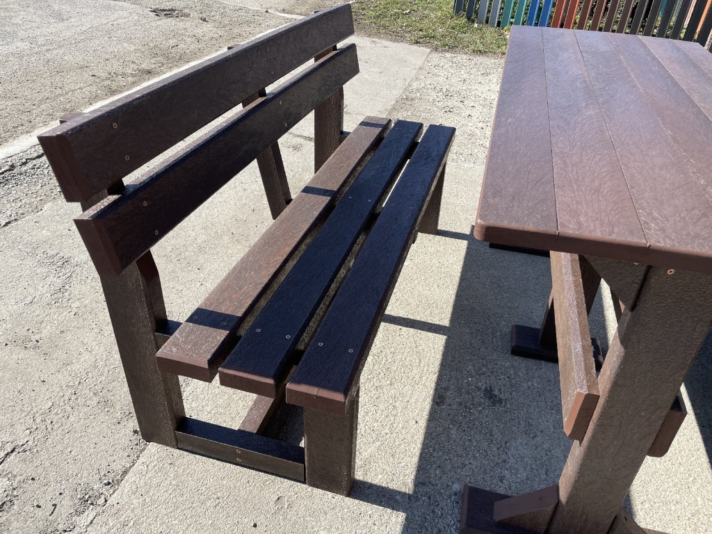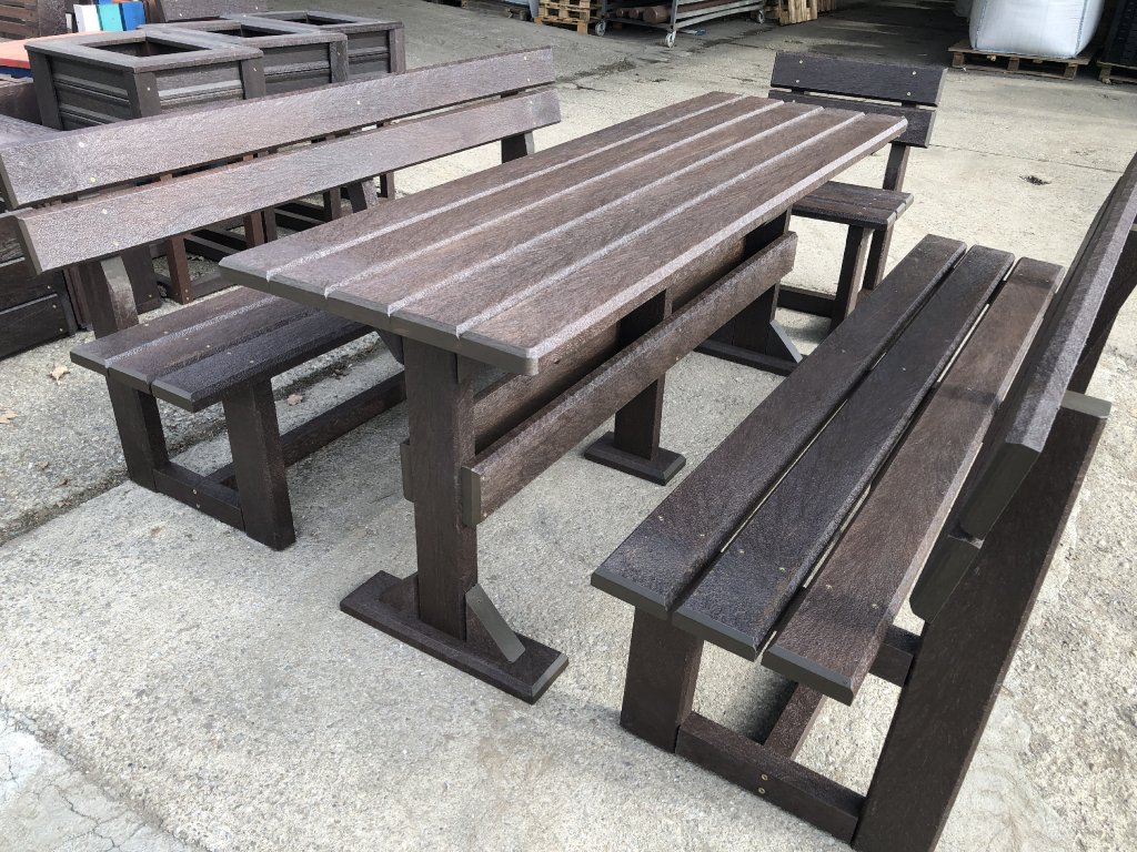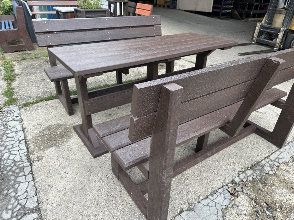 Sada je vyrobená z 3,5 cm hrubých dosiek. Materiál je stálofarebný, bezúdržbový a odolný voči poveternostným vplyvom. Stôl s lavičkami sú vhodné do parkov, záhrad, školských dvorov. Za príplatok je možná aj kombinácia dvoch celoplastových lavičiek s opierkami a jednej krátkej bezopierkovej lavičky alebo dvoch celoplastových s opierkami a jednej kratšej celoplastovej s opierkou.